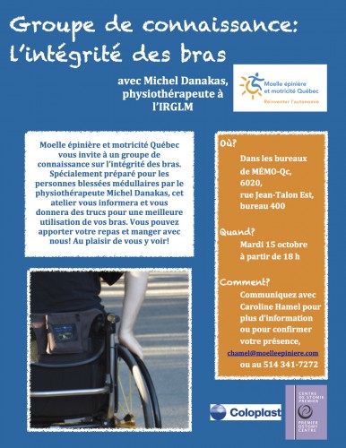 Venez assister à notre premier groupe de connaissance sur l’intégrité des bras spécialement préparé pour les personnes blessées médullaires par le physiothérapeute Michel Danakas.